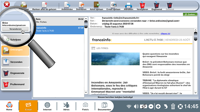 Terug in de e-mailtoepassing klik ik gewoon op "Veranderen" om het e-mailadres dat ik wil gebruiken te kiezen.